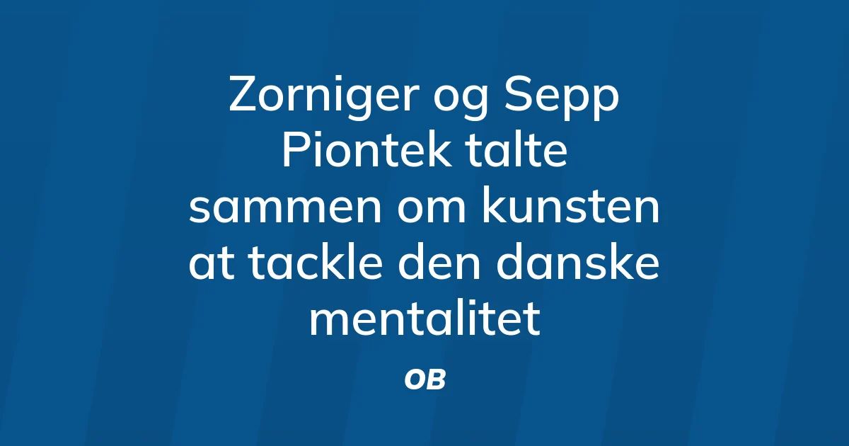 19. februar, 2026 - 18:30Zorniger og Sepp Piontek talte sammen om kunsten at tackle den danske mentalitetOBOB’s tyske træner Zorniger mødte den tidligere danske landstræner Sepp Piontek ved lanceringen af Pionteks bog, hvor de talte om udfordringerne ved at håndtere den danske mentalitet i fodbolden. TilbageLæs hele artiklen Fyens.dk