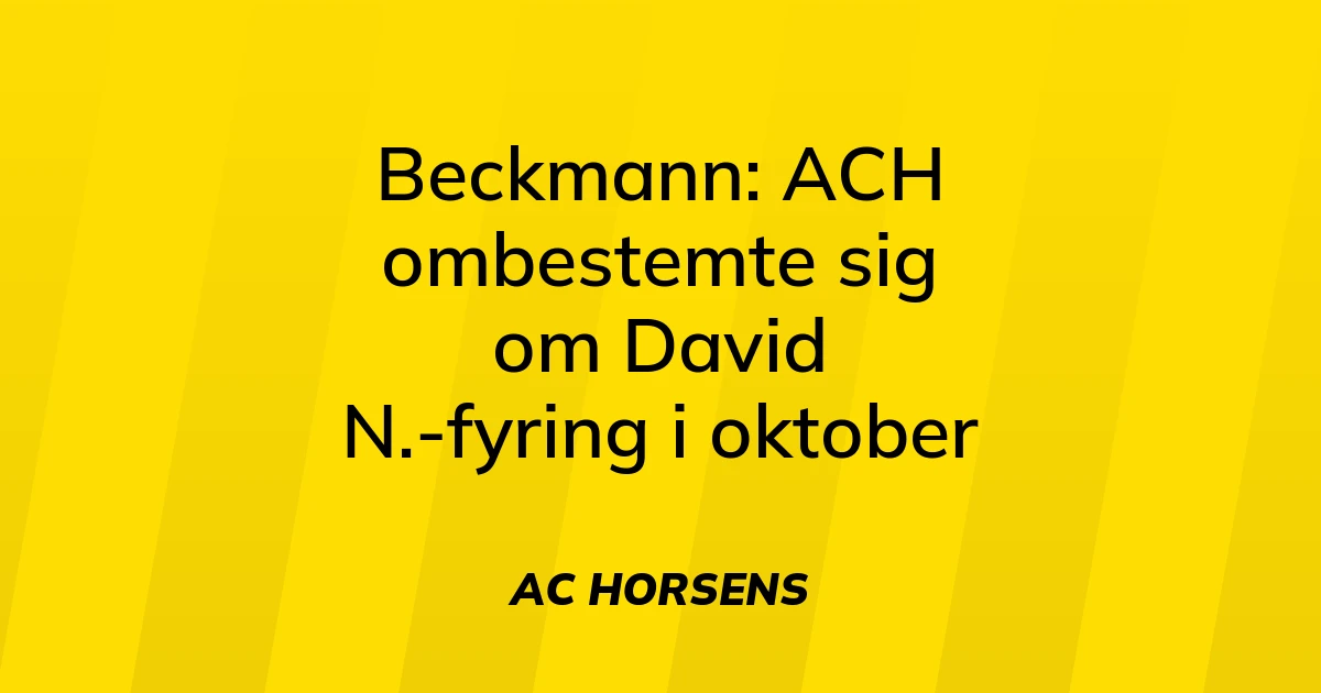 4. marts, 2026 - 21:06 Beckmann: ACH ombestemte sig om David N.-fyring i oktober AC Horsens Tilbage Læs hele artiklen Bold.dk/Play