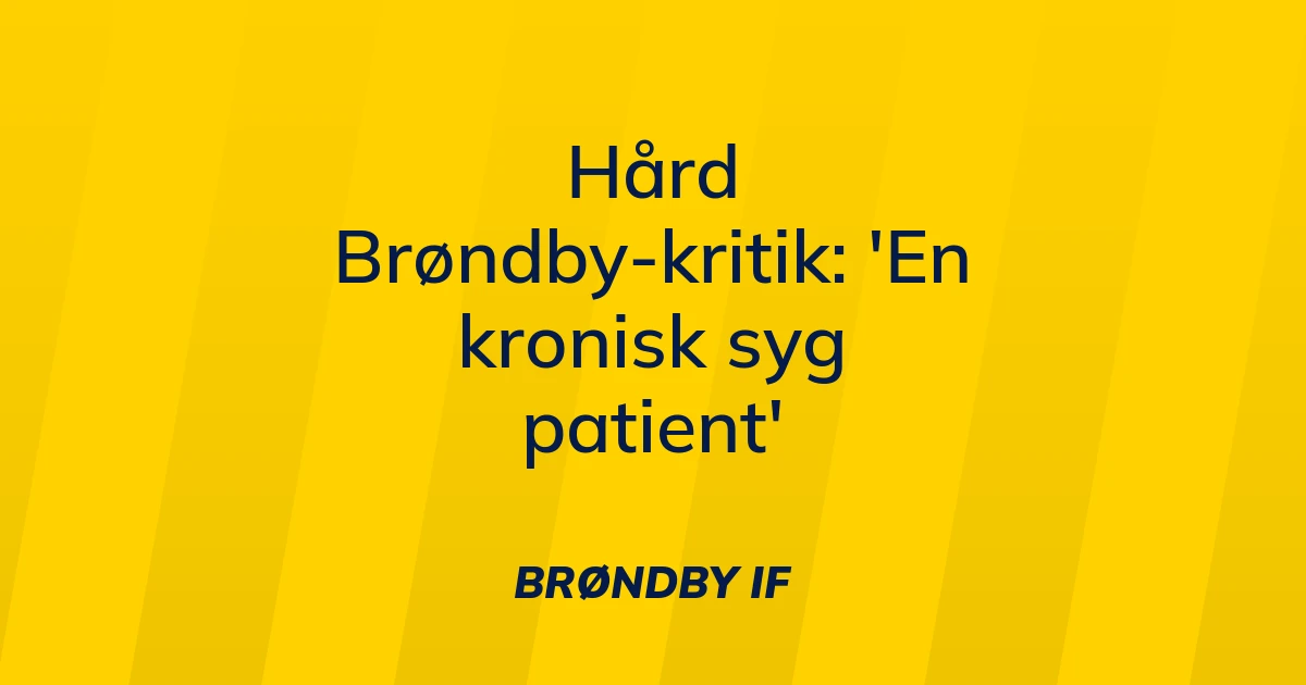 16. marts, 2026 - 18:48 Hård Brøndby-kritik: ‘En kronisk syg patient’ Brøndby IF Tilbage Læs hele artiklen Bold.dk/Play