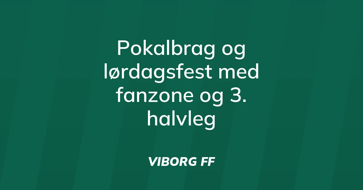 Viborg FF spiller pokalsemifinale mod F.C. København lørdag kl. 17:00 på Energi Viborg Arena. Fanzonen under Folkebladstribunen åbner kl. 14:00 med happy hour på drikkevarer indtil 15:00, plus DJ, beer pong, bordfodbold, ansigtsmaling og autografer med spillere kl. 15:35. Mad som burgere og nachos er tilgængelig. Efter kampen fortsætter festen i BDO Loungen til kl. 22:00 med drinks, fadøl, DJ og interviews. Sikr billet på billetter.vff.dk eller sæsonkort fra 79 kr./md.