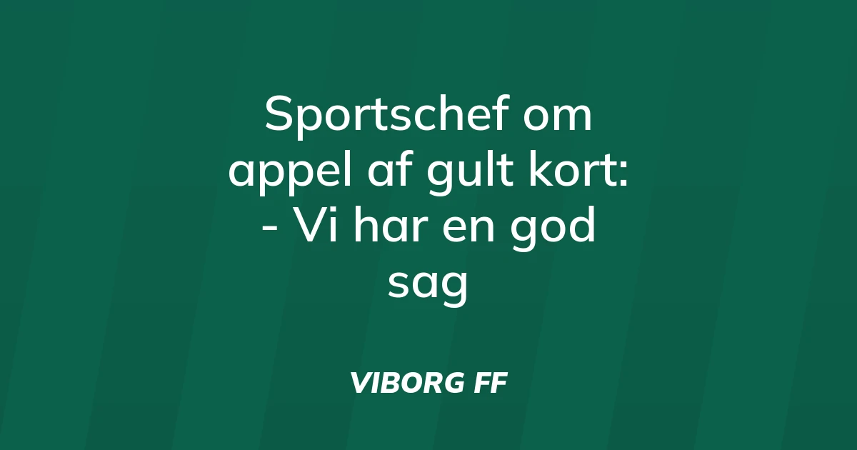 16. marts, 2026 - 17:35 Sportschef om appel af gult kort: – Vi har en god sag Viborg FF Viborg FF’s sportschef Mads Agesen er overbevist om succes med appellen af det gule kort, som spiller Sami Jalal Karchoud fik i kampen mod Brøndby. Klubben har indgivet klage og vurderer sagen som stærk til at få strafkortet omstødt. Tilbage Læs hele artiklen Viborg-Folkeblad.dk