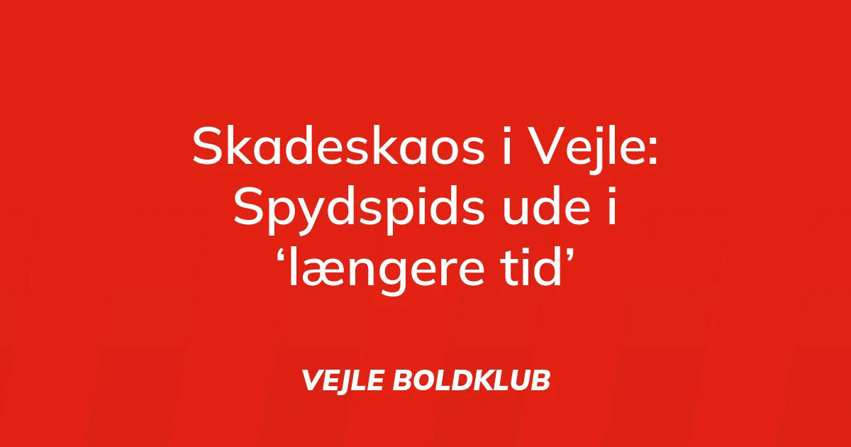Vejle Boldklub rammes af skadeskaos med otte spillere ude, herunder spydspidsen Wahid Faghir, der er ude i længere tid. Klubben ligger sidst i 3F Superligaen med 13 point efter 20 kampe og har tabt de to første forårsopgør i 2026. Cheftræner Claus Nørgaard bekræfter, at listen er vokset, hvilket forklarer den svære start på sæsonen.