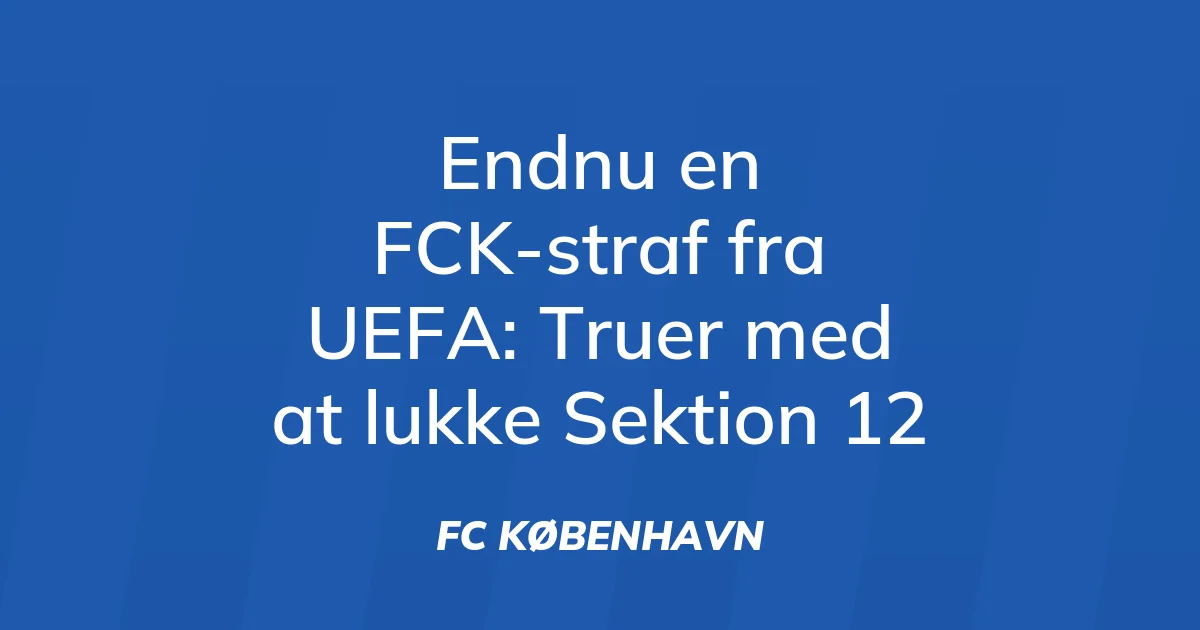 FC København har modtaget en ny straf fra UEFA efter Champions League-kampen mod Napoli, der endte uafgjort 1-1. Klubben er idømt en bøde på 39.000 euro på grund af tilhængernes adfærd på tribunen, og UEFA truer med at lukke Sektion 12. FCK bekræfter beslutningen på sin hjemmeside onsdag aften.