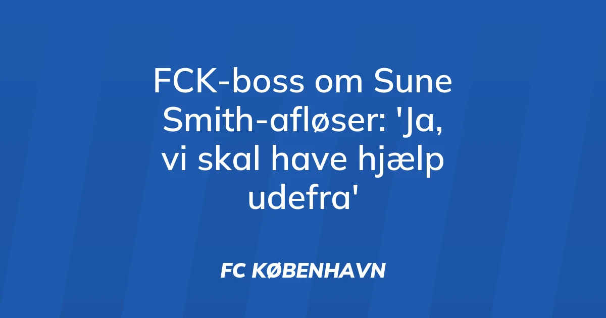 24. februar, 2026 - 14:36FCK-boss om Sune Smith-afløser: ‘Ja, vi skal have hjælp udefra’FC København TilbageLæs hele artiklen Bold.dk/Play
